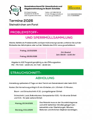 Strauchschnittabholung und Problemstoff- u. Sperrmüllsammlung